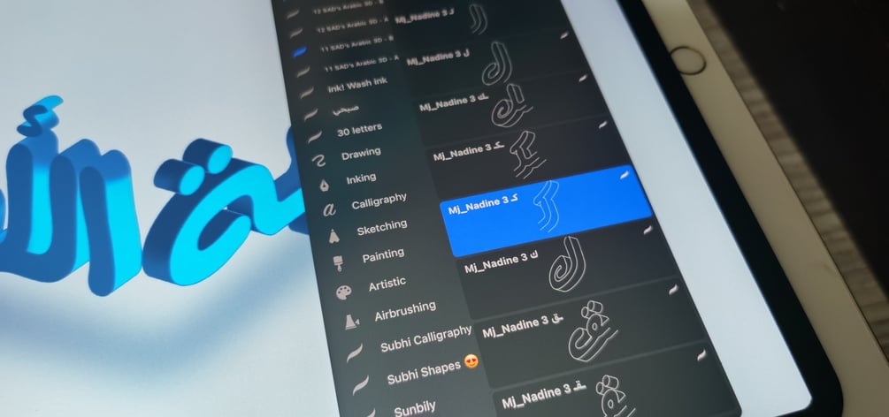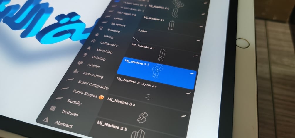 فيما يلي مجموعة الحروف العربية إم جي - نادين ثلاثية الأبعاد لتطبيق بروكريت ، تحتوي هذه المجموعة على 420 حرفًا عربيًا ثلاثي الأبعاد للخط إم جي - نادين ، هذا العدد يغطي جميع المواضع ثلاثية الأبعاد الأربعة لجميع الأحرف (4 زوايا منظورية) وحالات الحرف ، منفصل ، في بداية الكلمة ، في وسط الكلمة ، وفي الموضع الأخير من الكلمة.